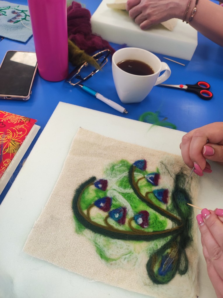 “The women at the Conversation Clubs have really enjoyed the workshops. We chatted about life, crafting and food (as usual!) as we happily needle-felted away, and found it very relaxing. We were also very proud of what we produced and look forward to going to see our work in the exhibition in Glastonbury.”