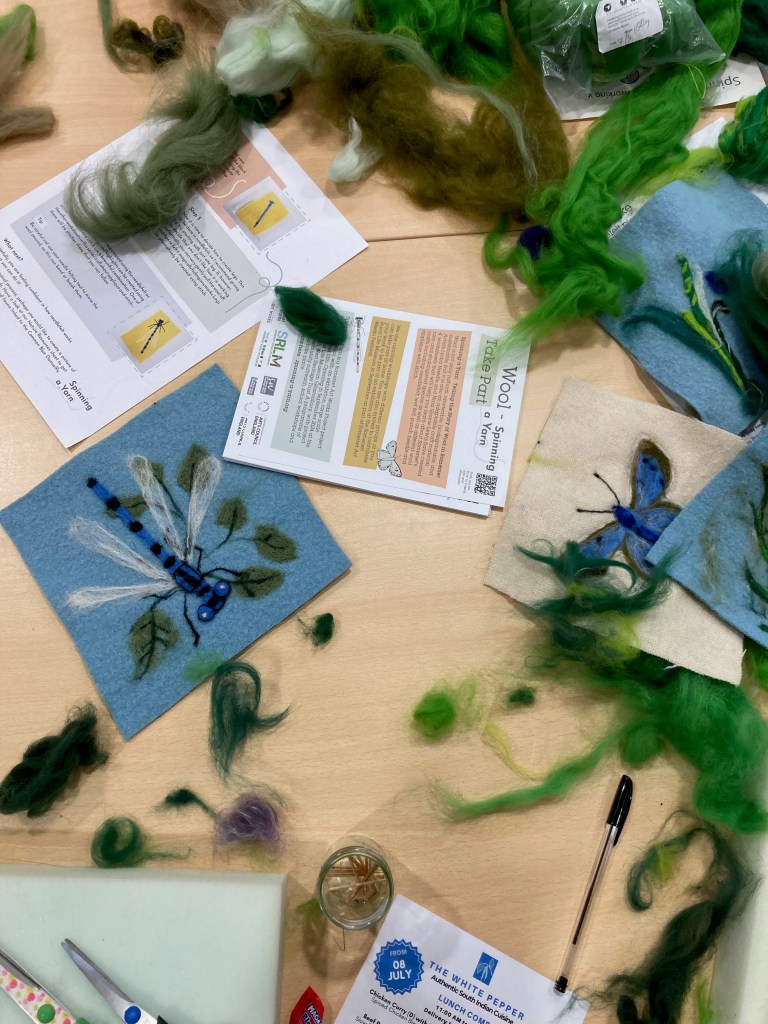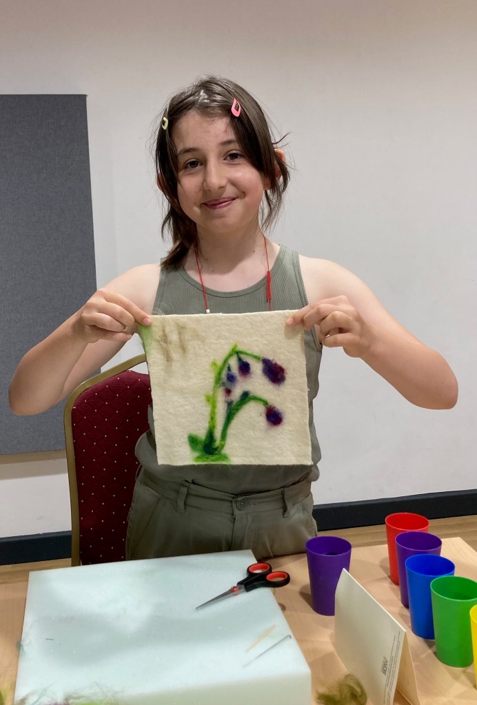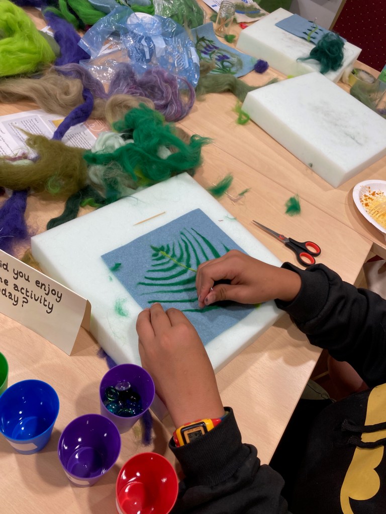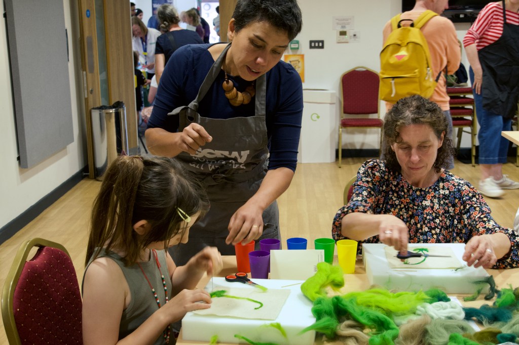 We offered needlefelting workshops throughout the event, creating bluebells and fern images, led by artist Luan Macdonald and SAW Project Support from Hannah Earl. Everyone who joined in was keen to learn a new skill and share their work for the exhibition at the Somerset Rural Life Museum in September. Most had no prior experience of needlefelting and were surprised by how much they enjoyed it, with some enthusing about how they would like to take it up as a hobby.