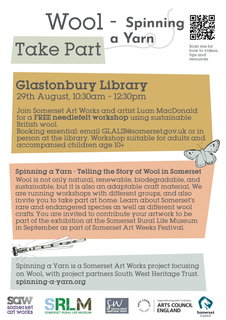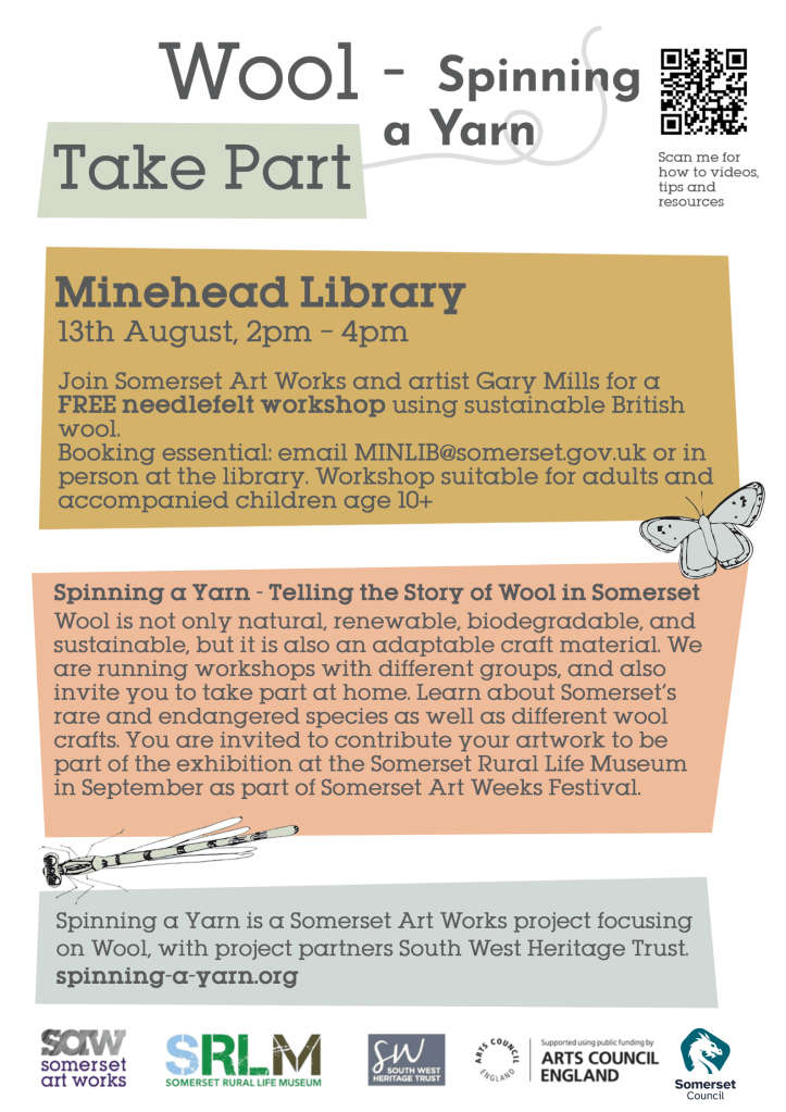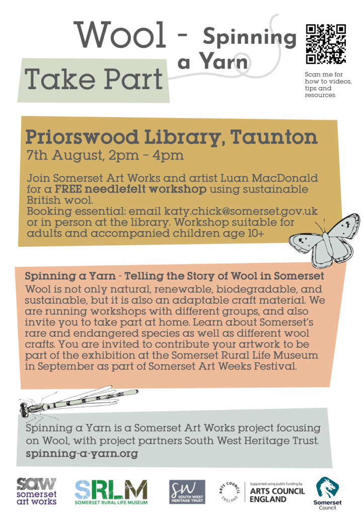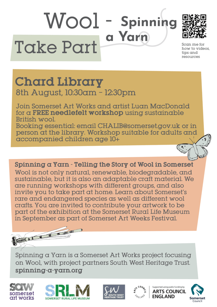 We are delighted to be offering FREE Spinning a Yarn workshops in Somerset Libraries through August – come join us!