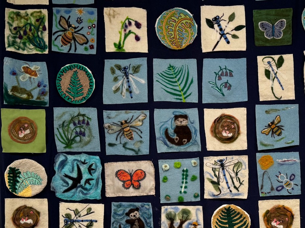 One of the highlights of Spinning a Yarn has been the number of people who have enthusiastically taken part in over 30 workshops, working with wool and creating beautiful artworks, inspired by endangered species and habitats in Somerset.
