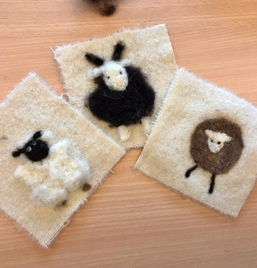 Lydia’s drop-in session involved creating images of Somerset sheep using needlefelting processes and natural wool. It was a really happy session and Lydia made sure to encourage everyone to take part including parents, fathers especially, many of whom had assumed it wasn’t for them. Everyone who took part became fully immersed in the session, and every person completed a wonderful and characterful Somerset sheep!