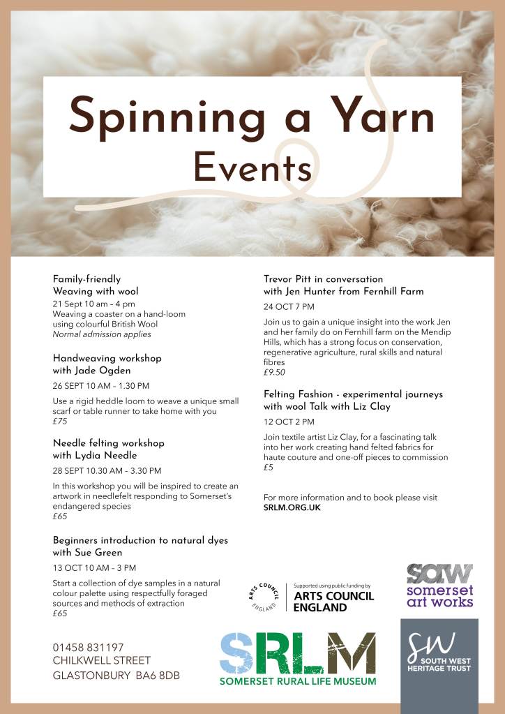 Booking is required for workshops and talks at https://swheritage.org.uk/news_tags/spinning-a-yarn/